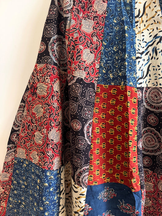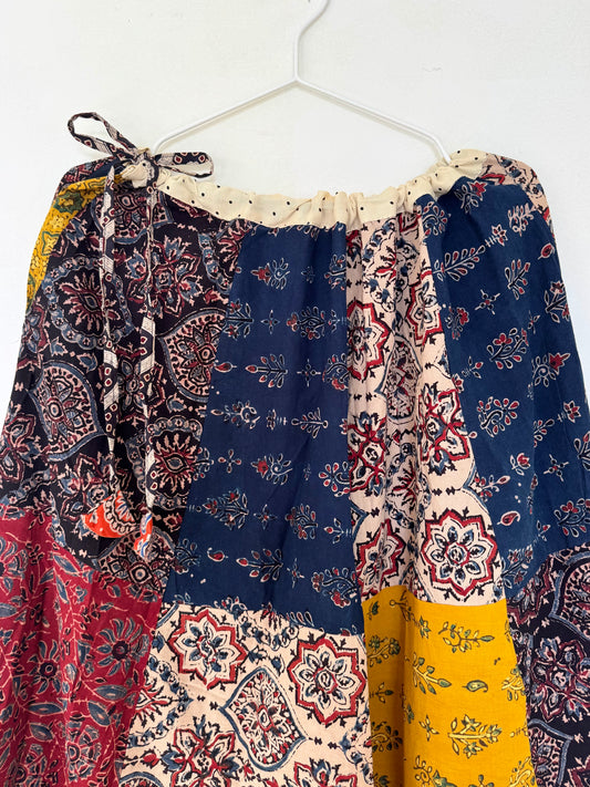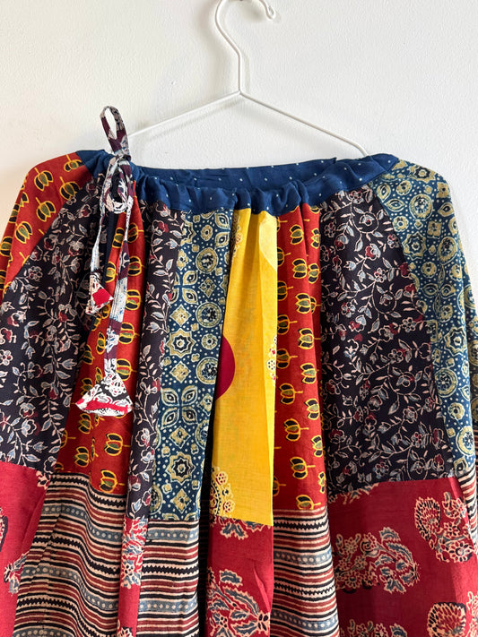 π»Navrang ~ Ajrakh Long Skirt ~ Multicolor w/ blue polka dots