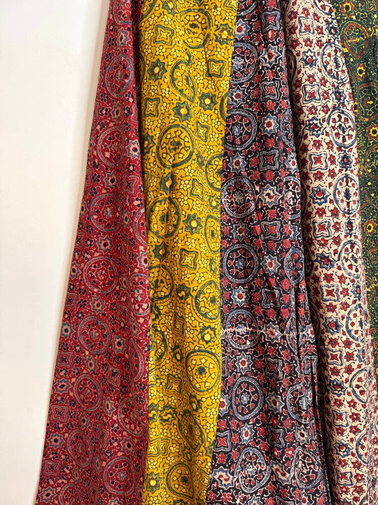 π»Navrang ~ Ajrakh Handcrafted Long Skirt ~ Multicolor w/ cream polka border