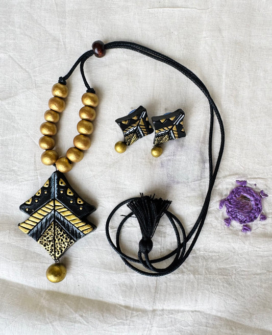 Mati ke Rang ~ Terracotta Jewelry Set ~ Chevron Black