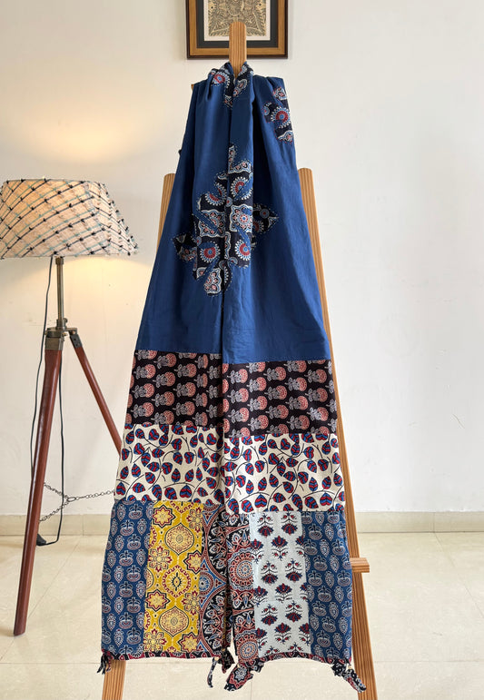 Ajrakh Applique & Kantha Embroidered Dupatta ~ Coco with Blue Patchwork