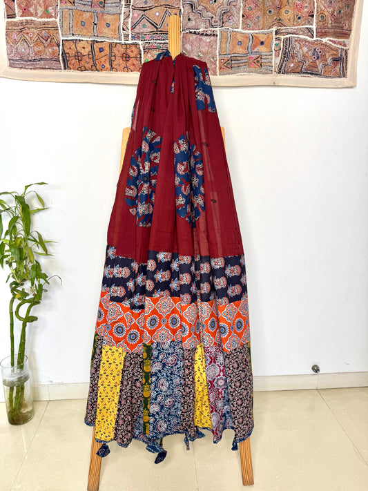 𓂃ོ⋆☀︎𓂃ᨒོ Ajrakh, Applique & Kantha Embroidered Dupatta ~ Burgundy Red 𑁍ࠬ