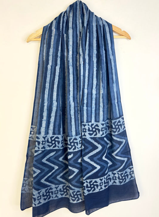 Raag 🪷 Mulmul Cotton Stoles ~ Zigzag Indigo