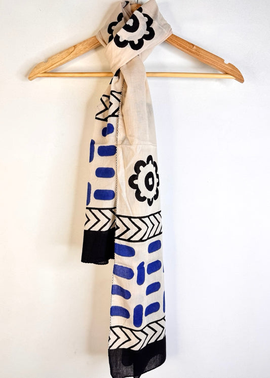Raag 🪷 Mulmul Cotton Stoles ~ Indigo Doodle
