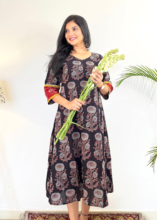 Noor 9 to 5 Ajrakh Dress ~ Black and Red