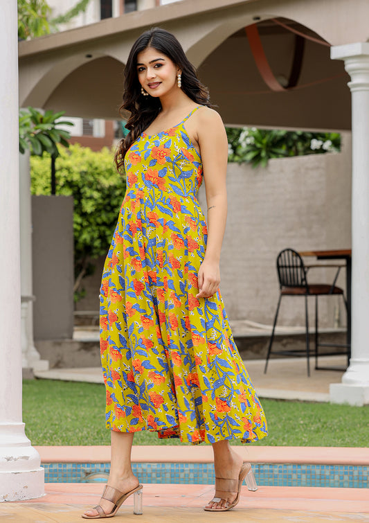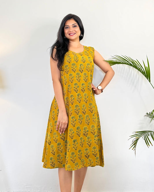 Noor 9 to 5 Ajrakh Dress ~ Mustard Yellow - Daisy Print