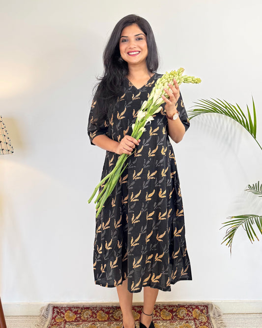 Khushi ~ Misty Black Cotton Dress ~ Viola Delight