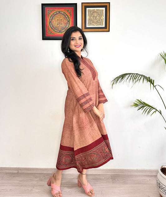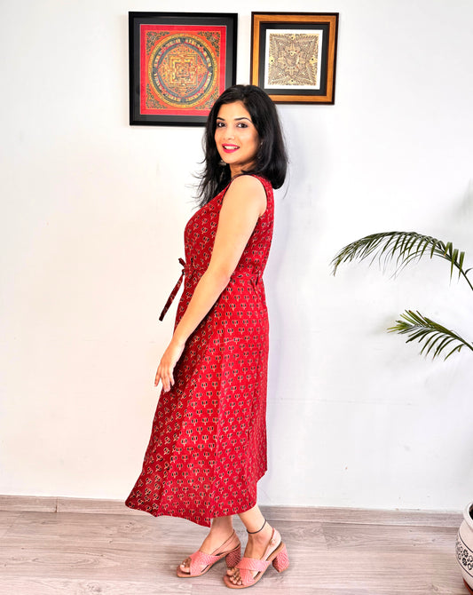 Noor 9 to 5 Ajrakh Dress - Salmon Red - Kaftan Style