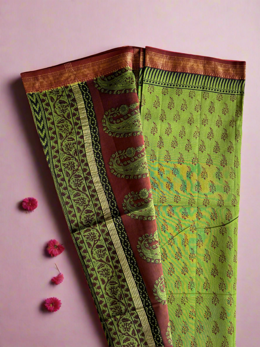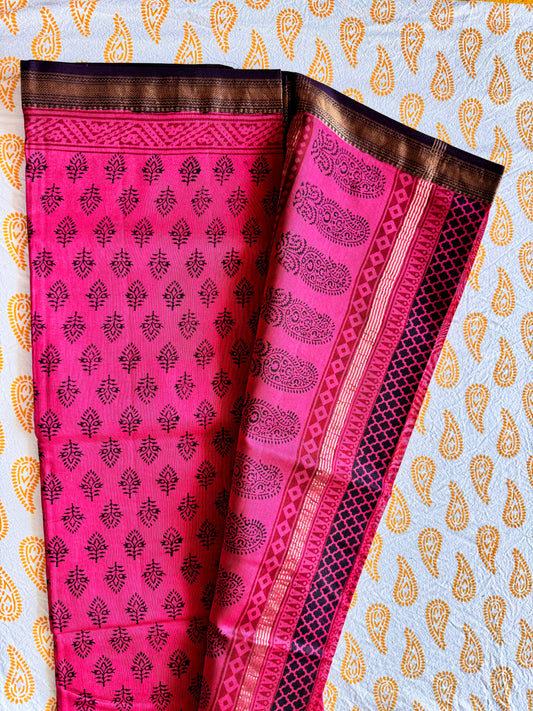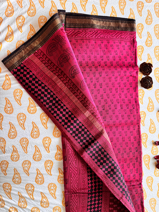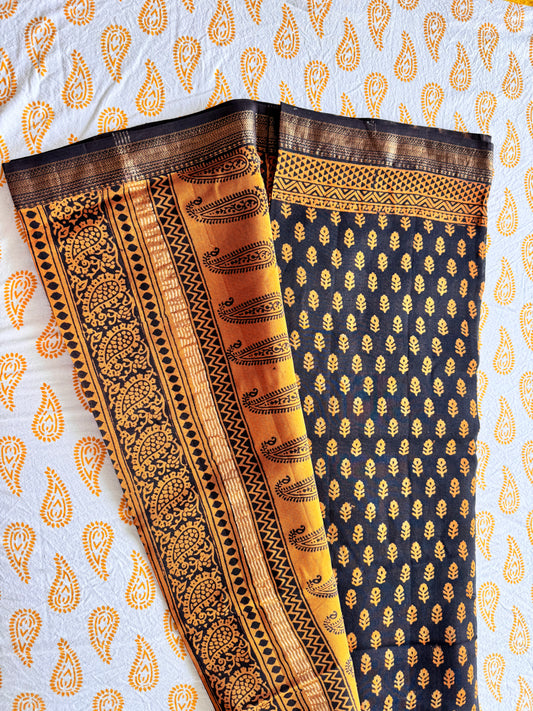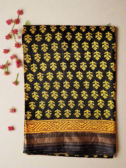 Queen of Spades - Yellow & Black Maheshwari Saree