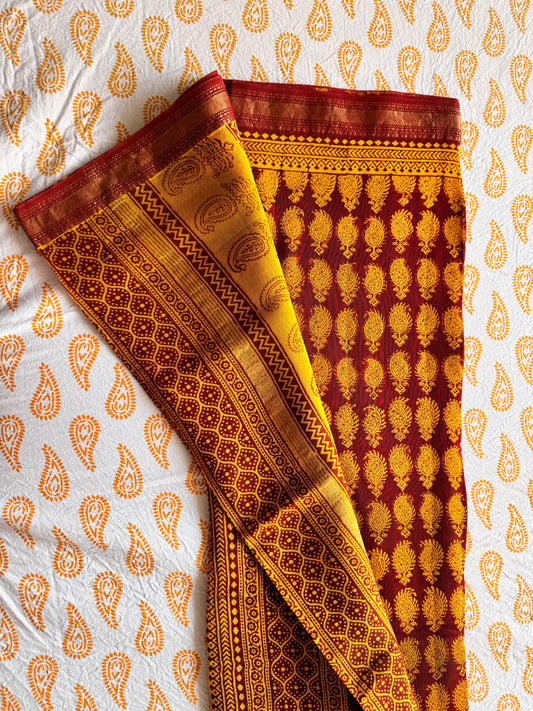 Ajrakh Applique & Kantha Embroidered Dupatta ~ Mustard Yellow