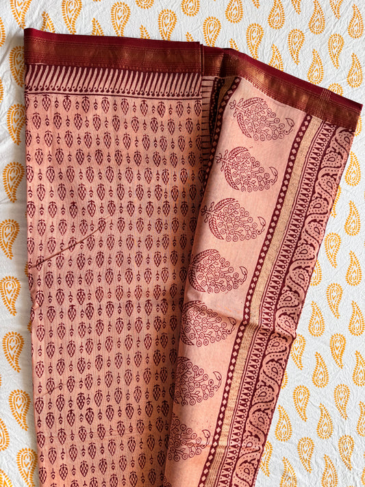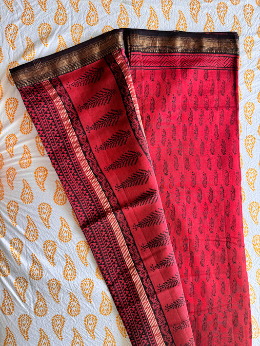 Ajrakh Applique & Kantha Embroidered Dupatta ~ Deep Red with Kantha Work