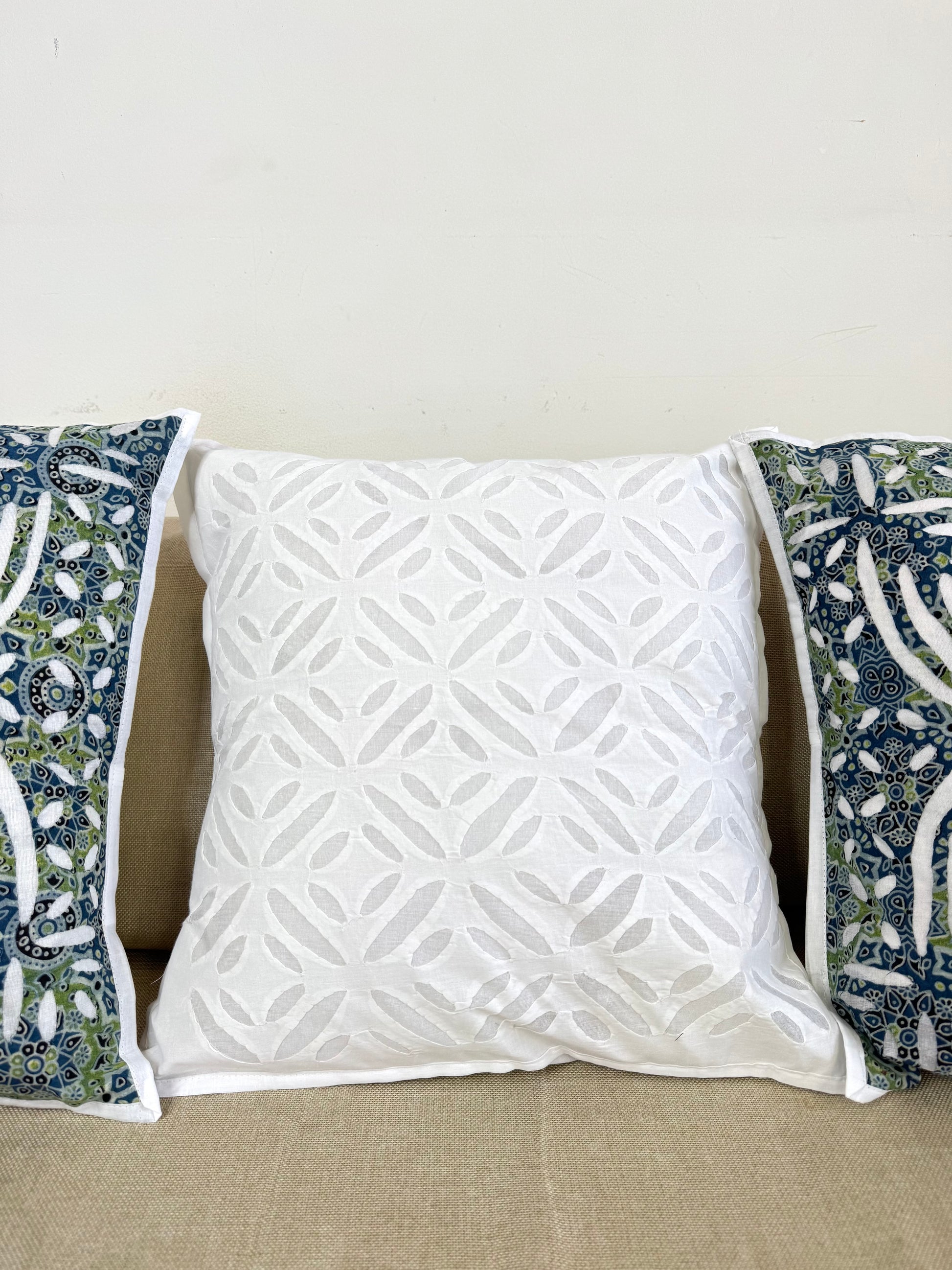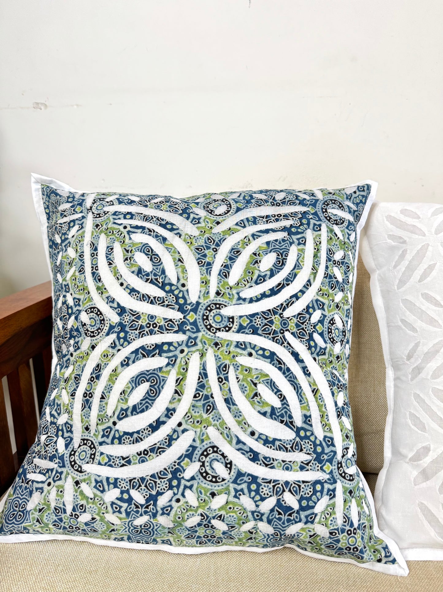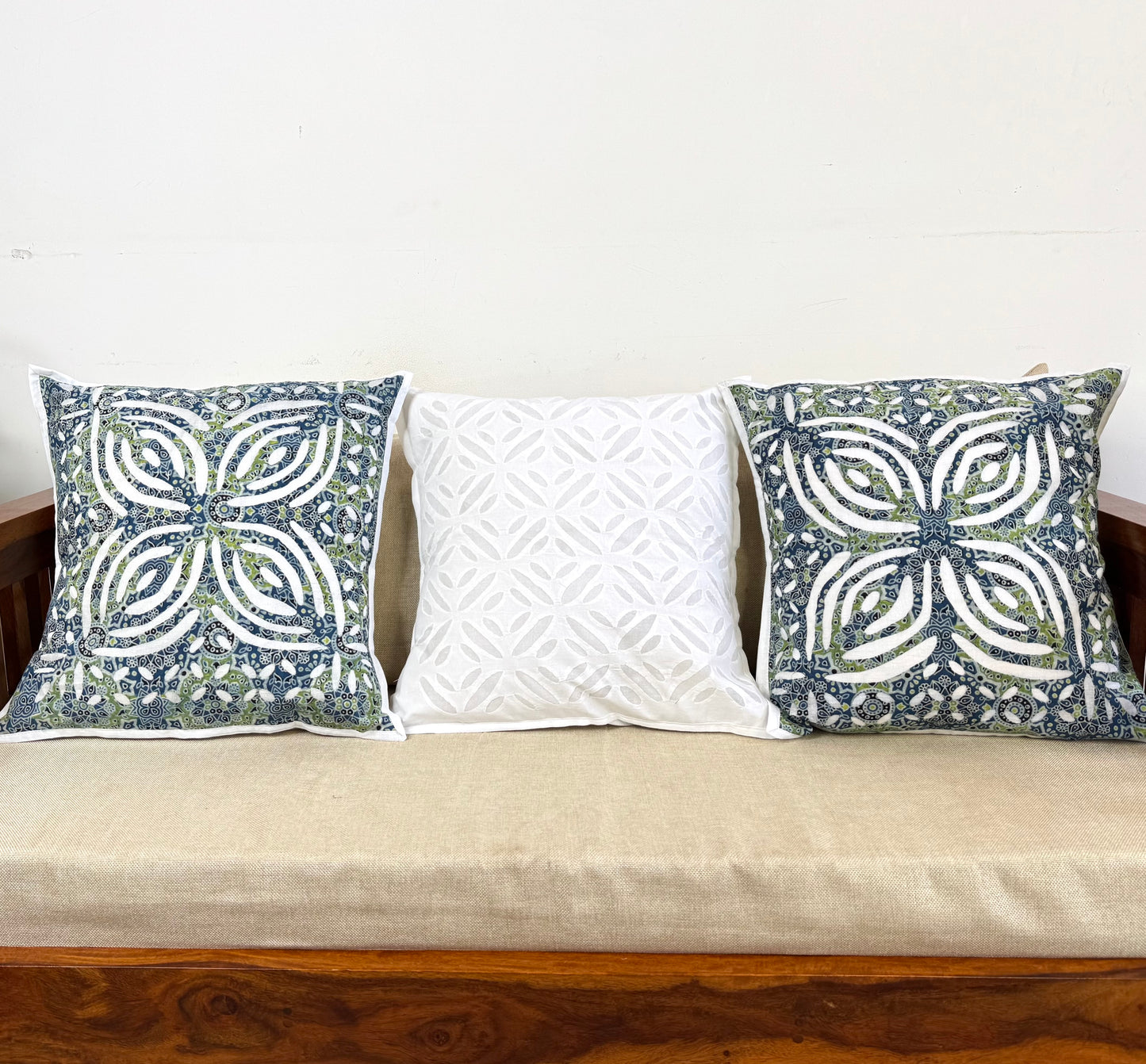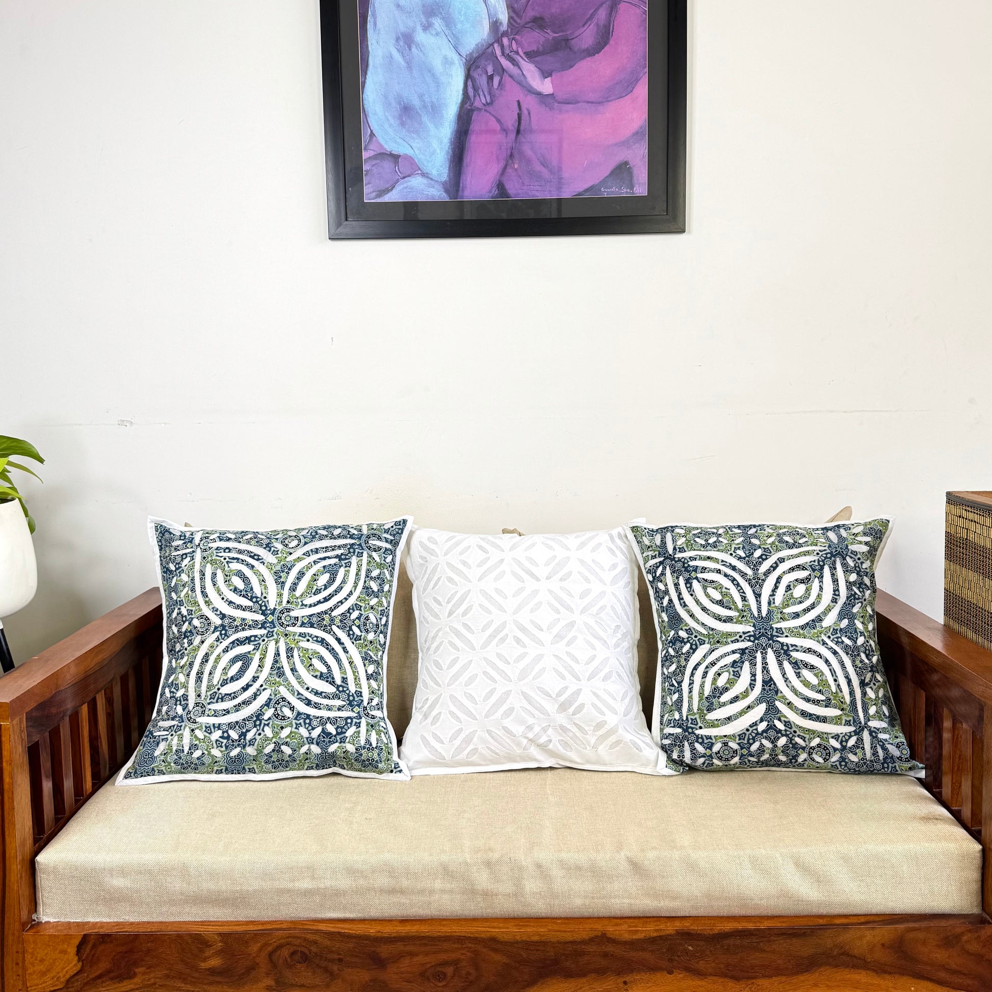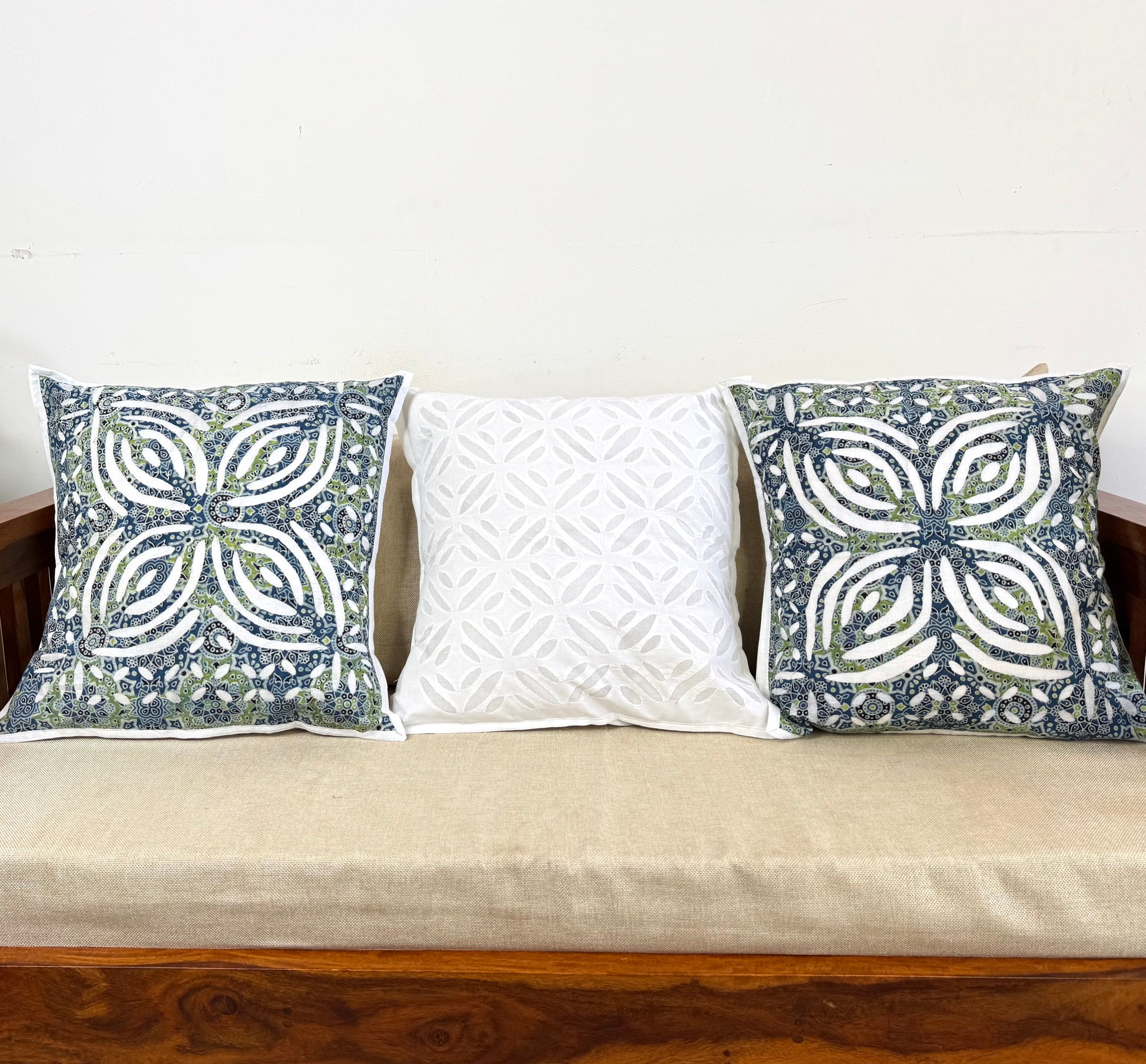 Applique cutwork Cushion cover ~ Green & White ~ Set of 3