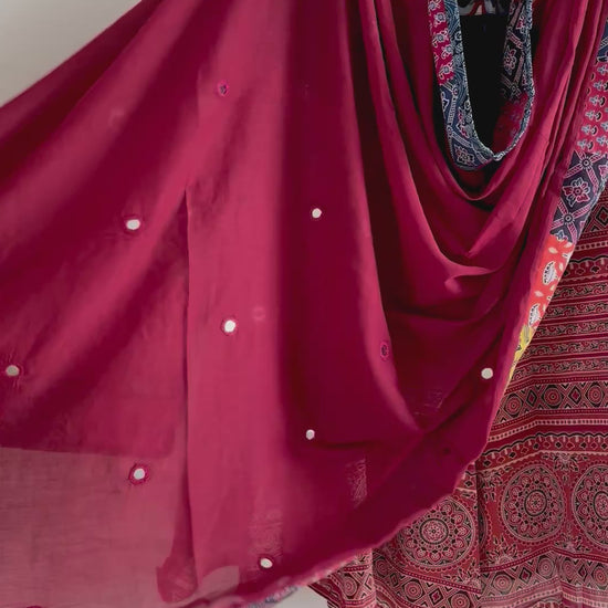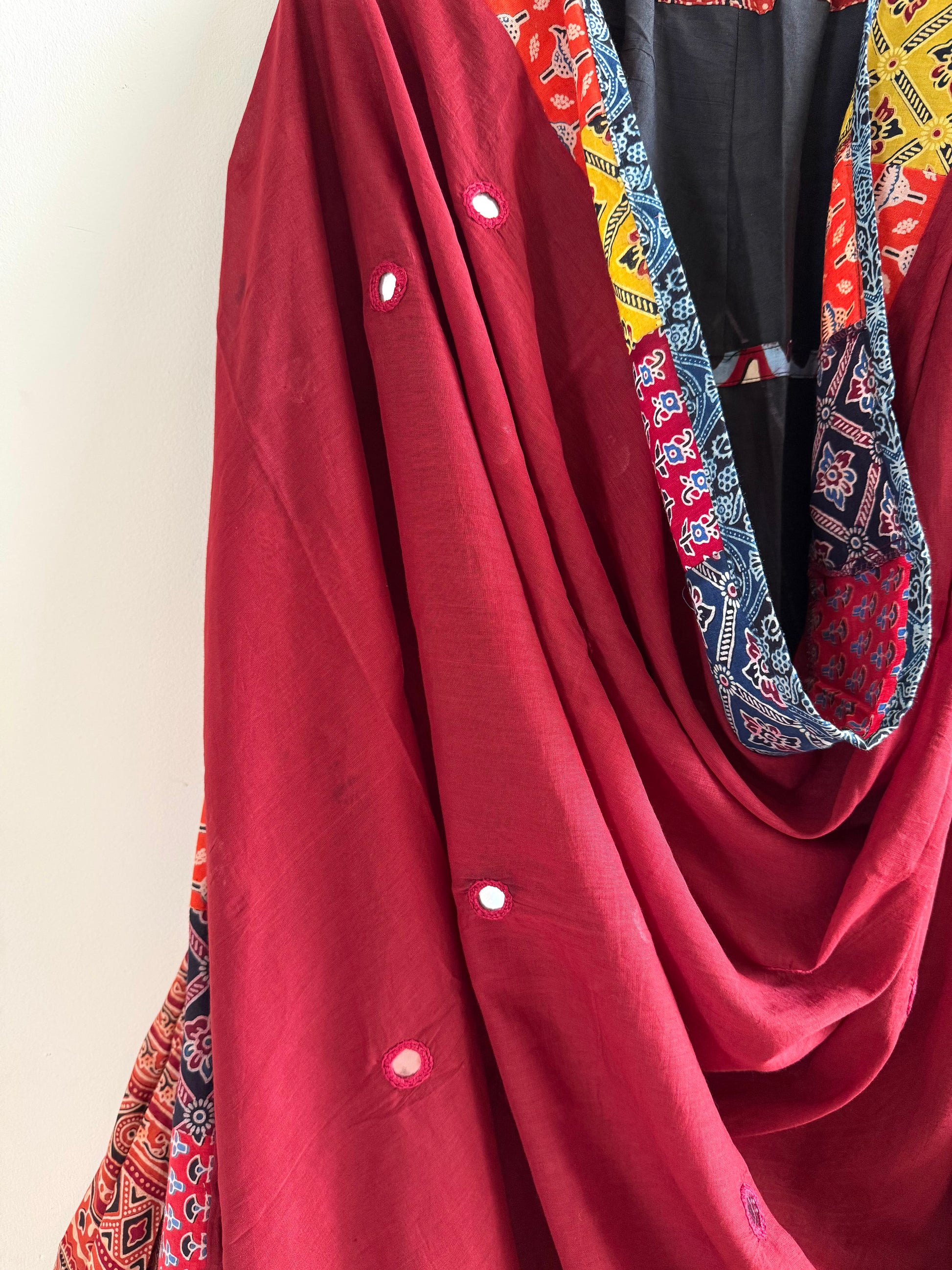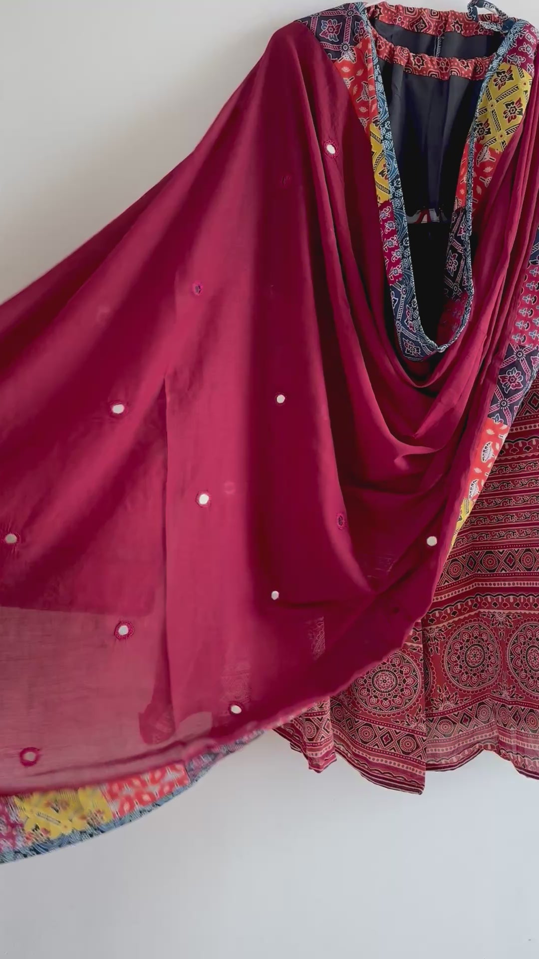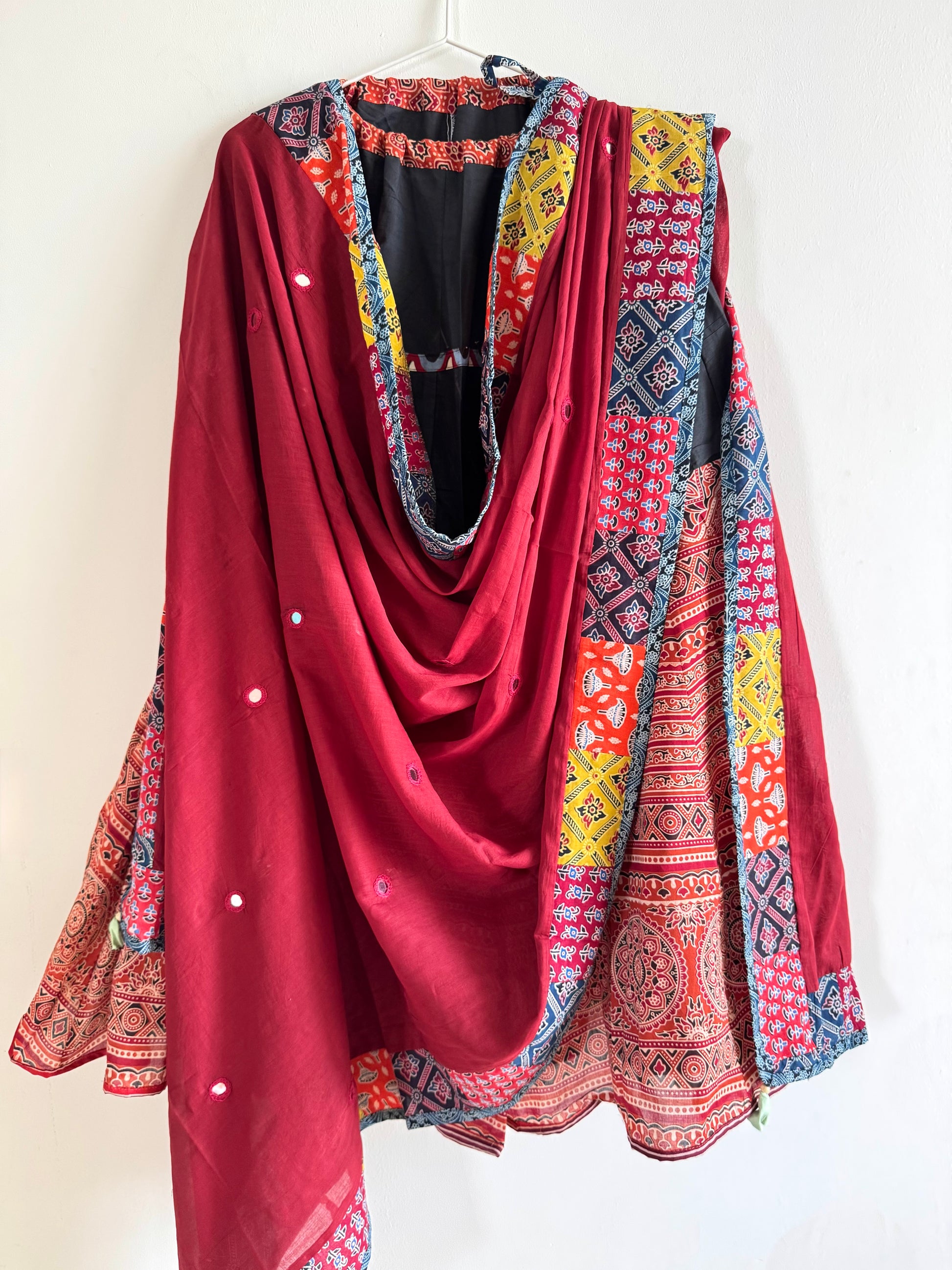 ✨Garba nu Ghoomie ~ Ajrakh Lehenga and Dupatta Set ~ Deep Red w/ Black