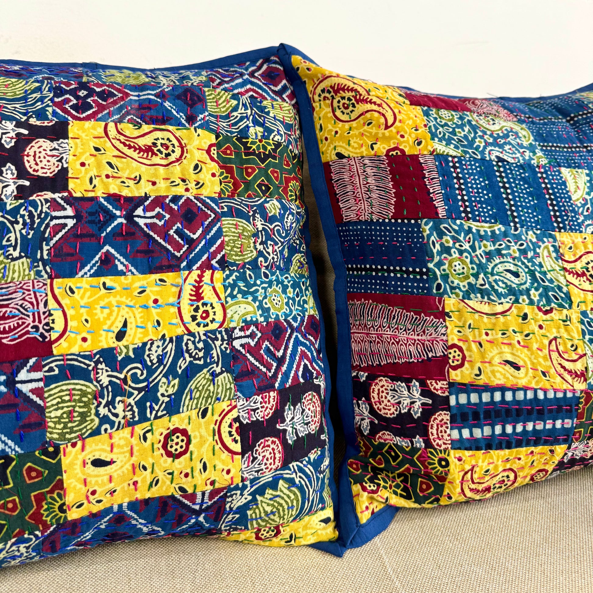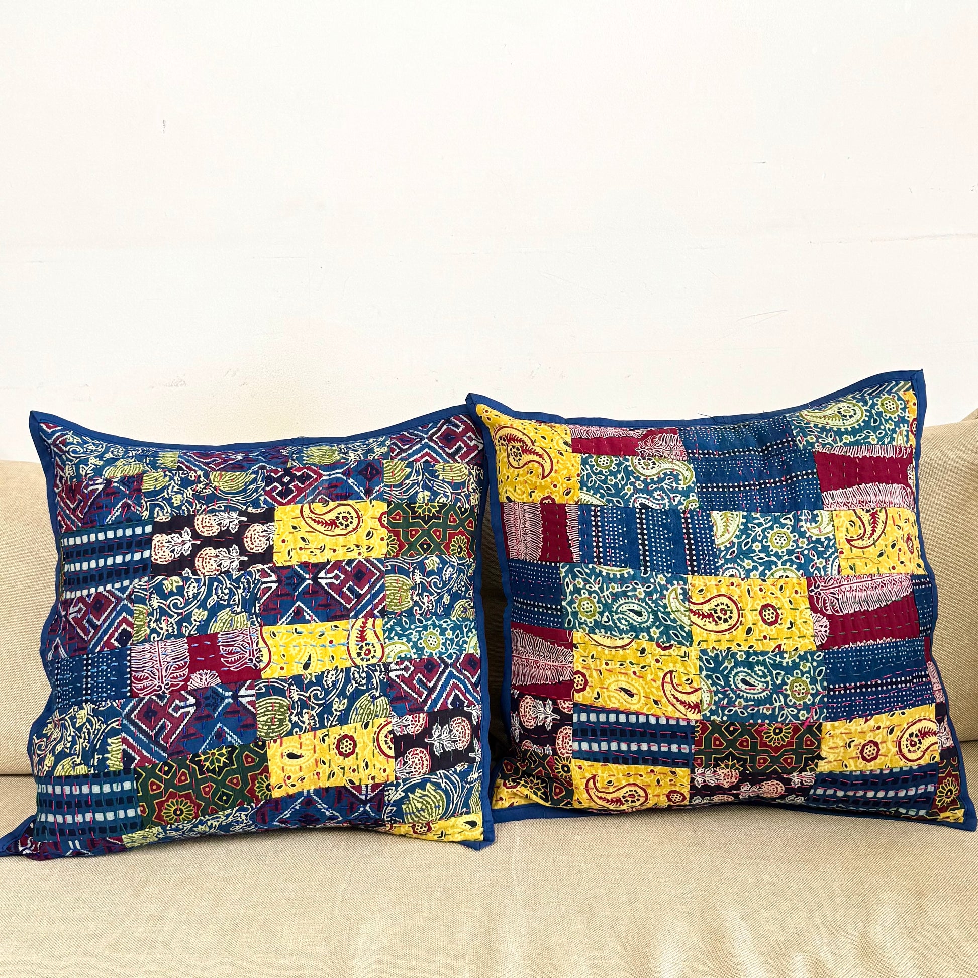Ajrakh & Kantha Embroidered Cushion Covers ✨