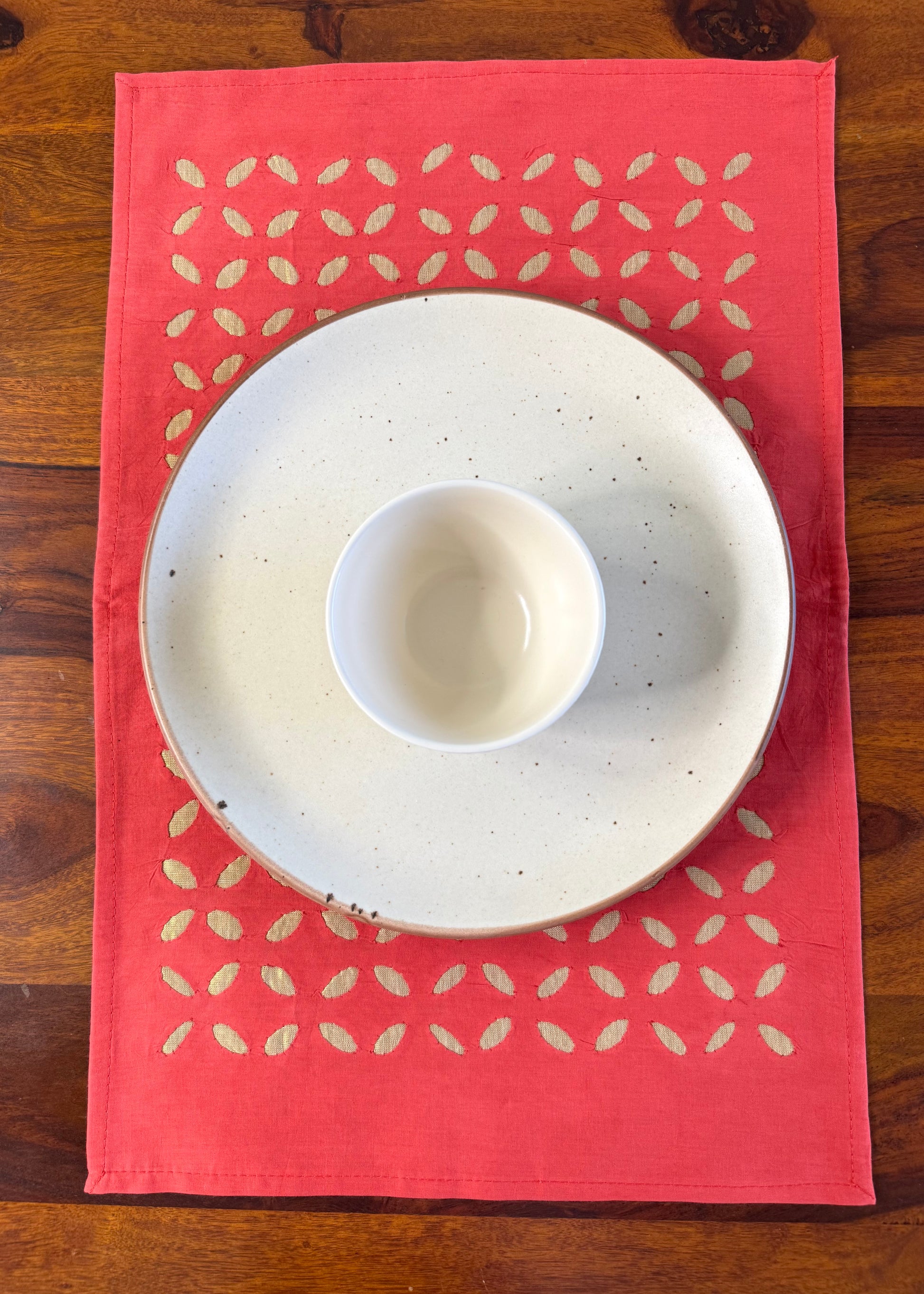 Intricate cutwork creates a beautiful play of light and shadow, while fine cotton and chanderi keeps it glittery and sturdy. Perfect for meals that echo smiles and laughter.