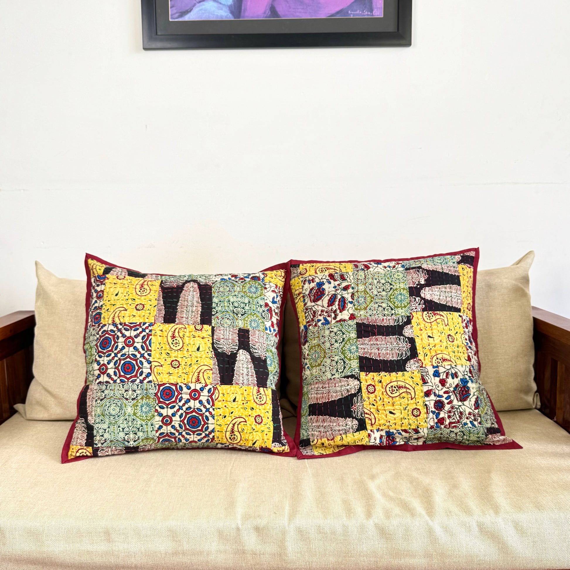 Ajrakh & Kantha Embroidered Cushion Covers ✨