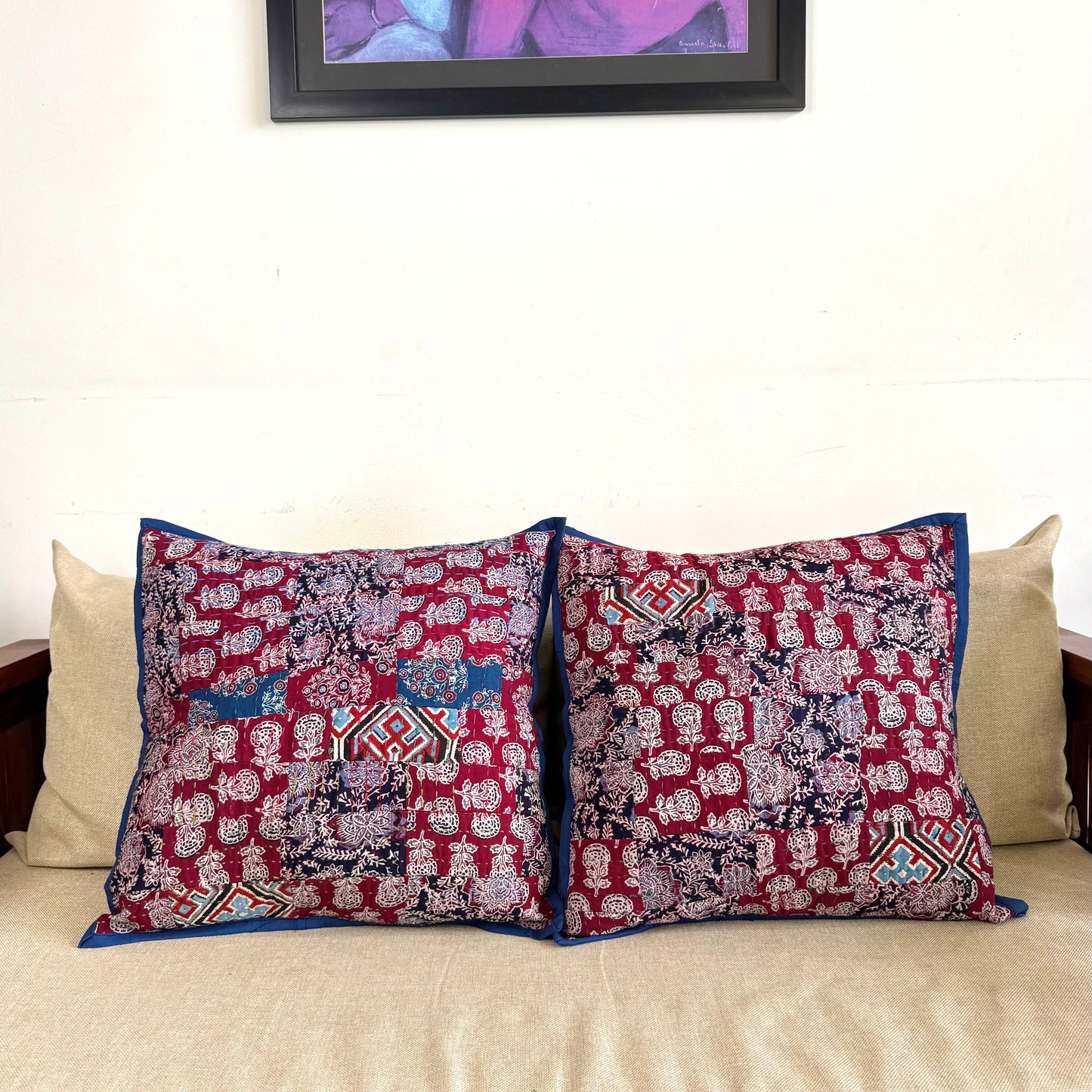 Ajrakh & Kantha Embroidered Cushion Covers ✨