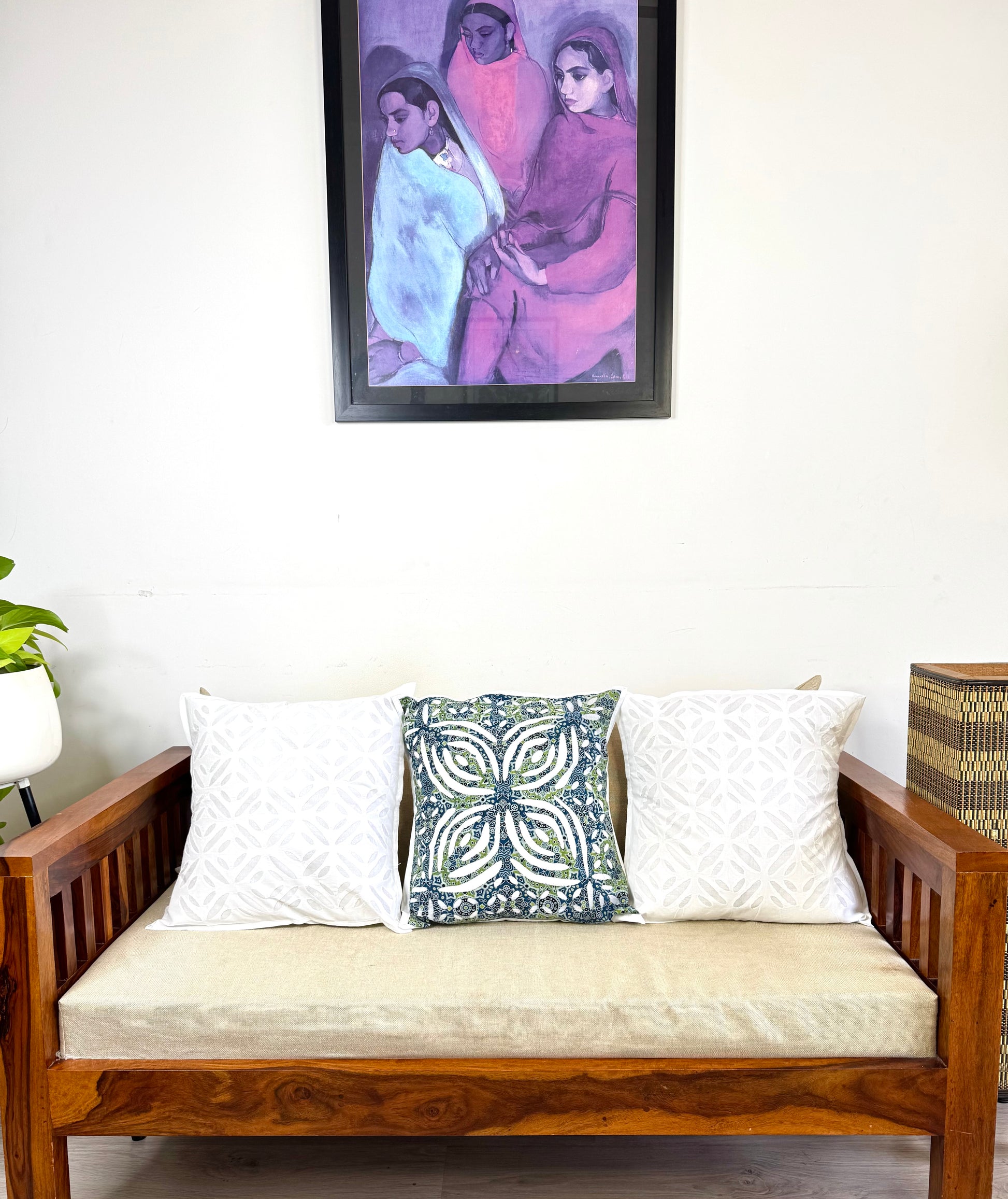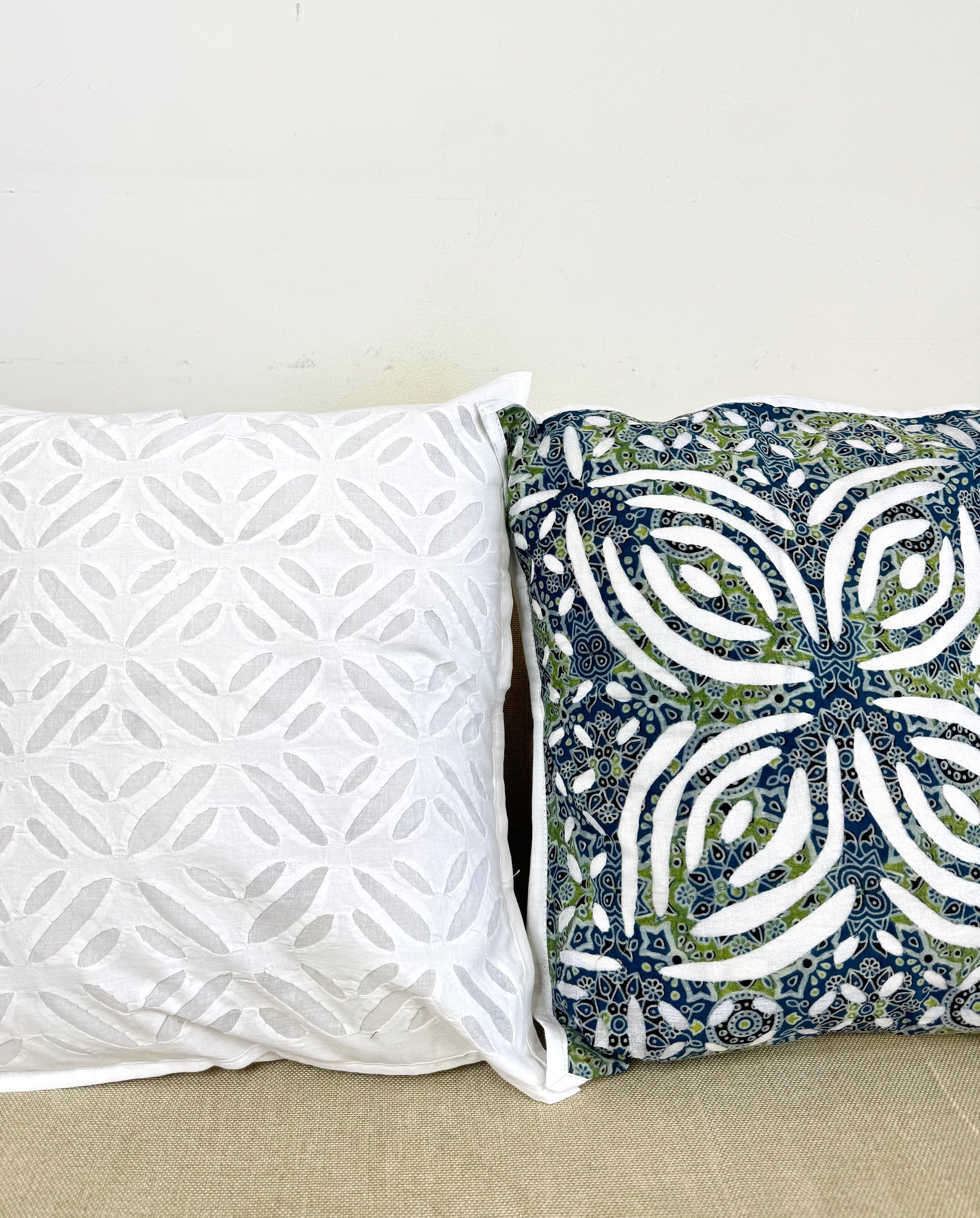 Applique cutwork Cushion cover ~ White & Green ~ Set of 3