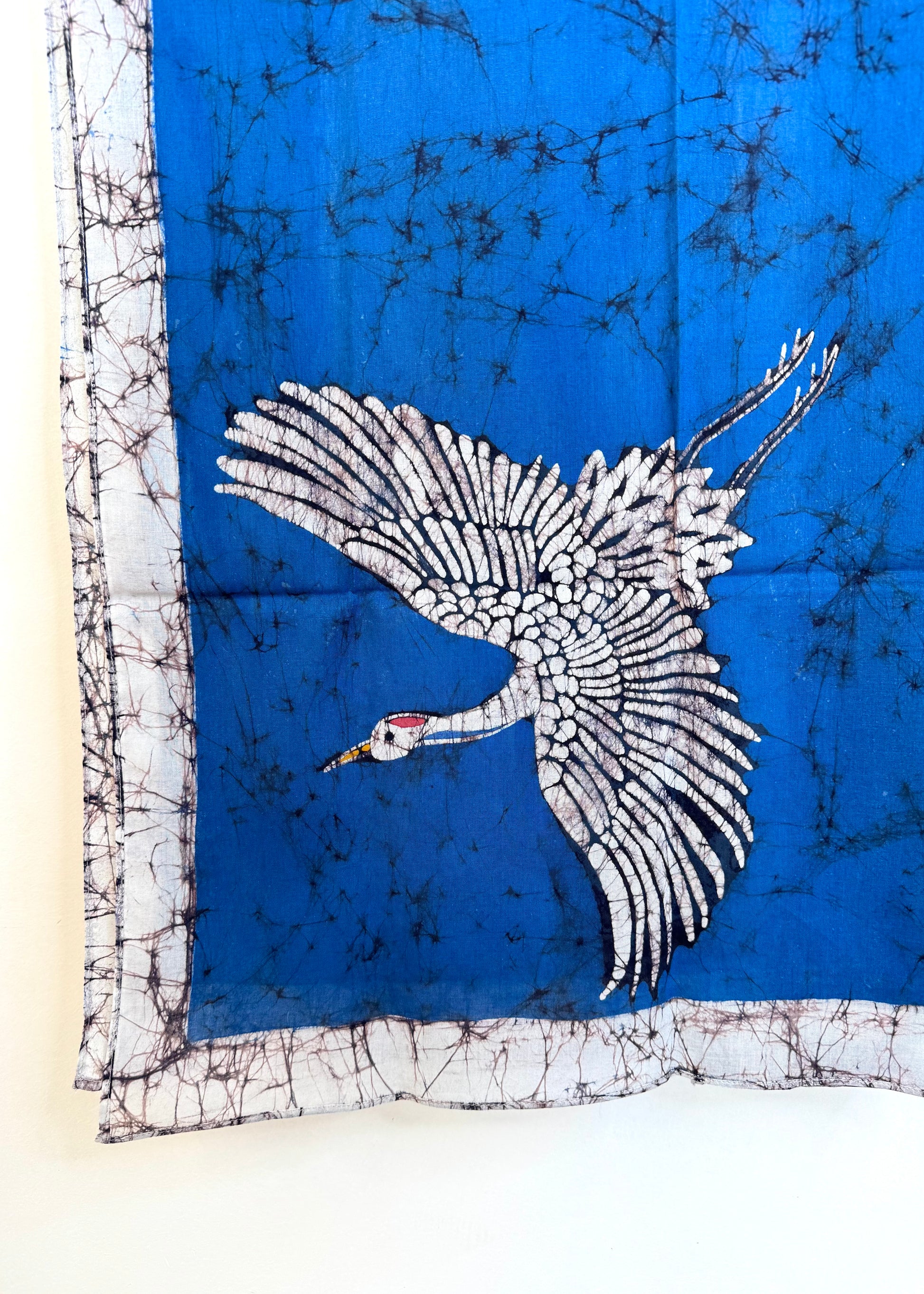 • Created using traditional wax-resist batik in deep indigo and earthy tones