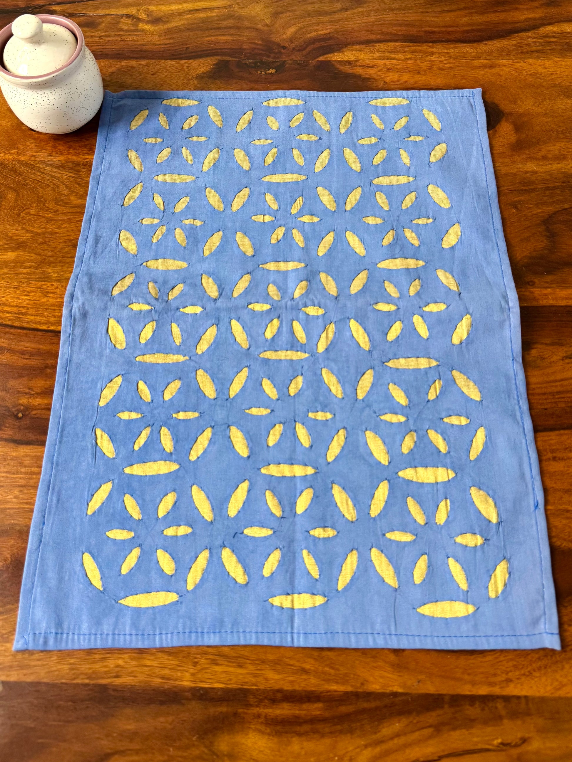 Pastel Blue ~ Applique work Table Runner w/ 4 Table Mats