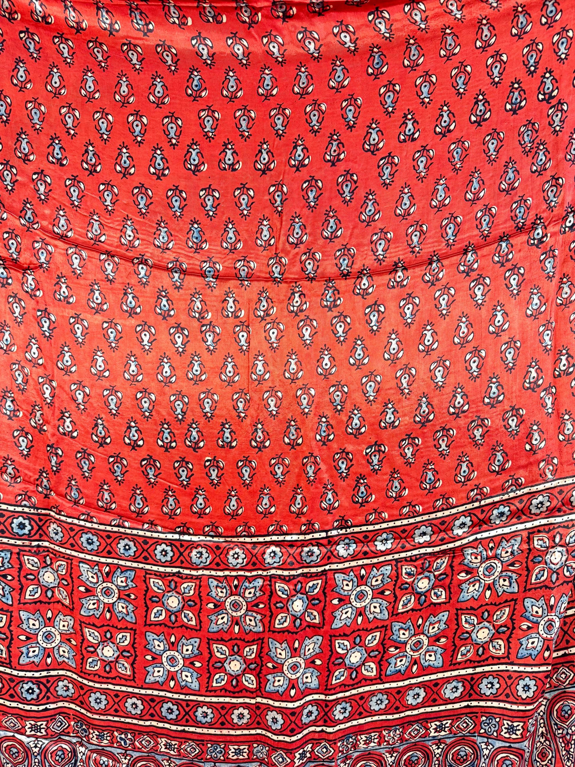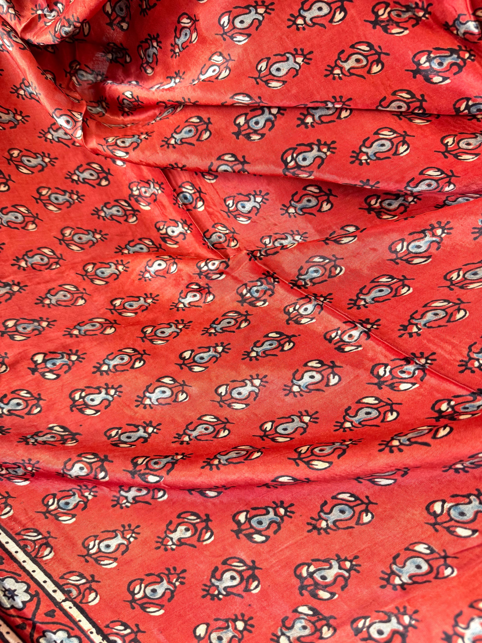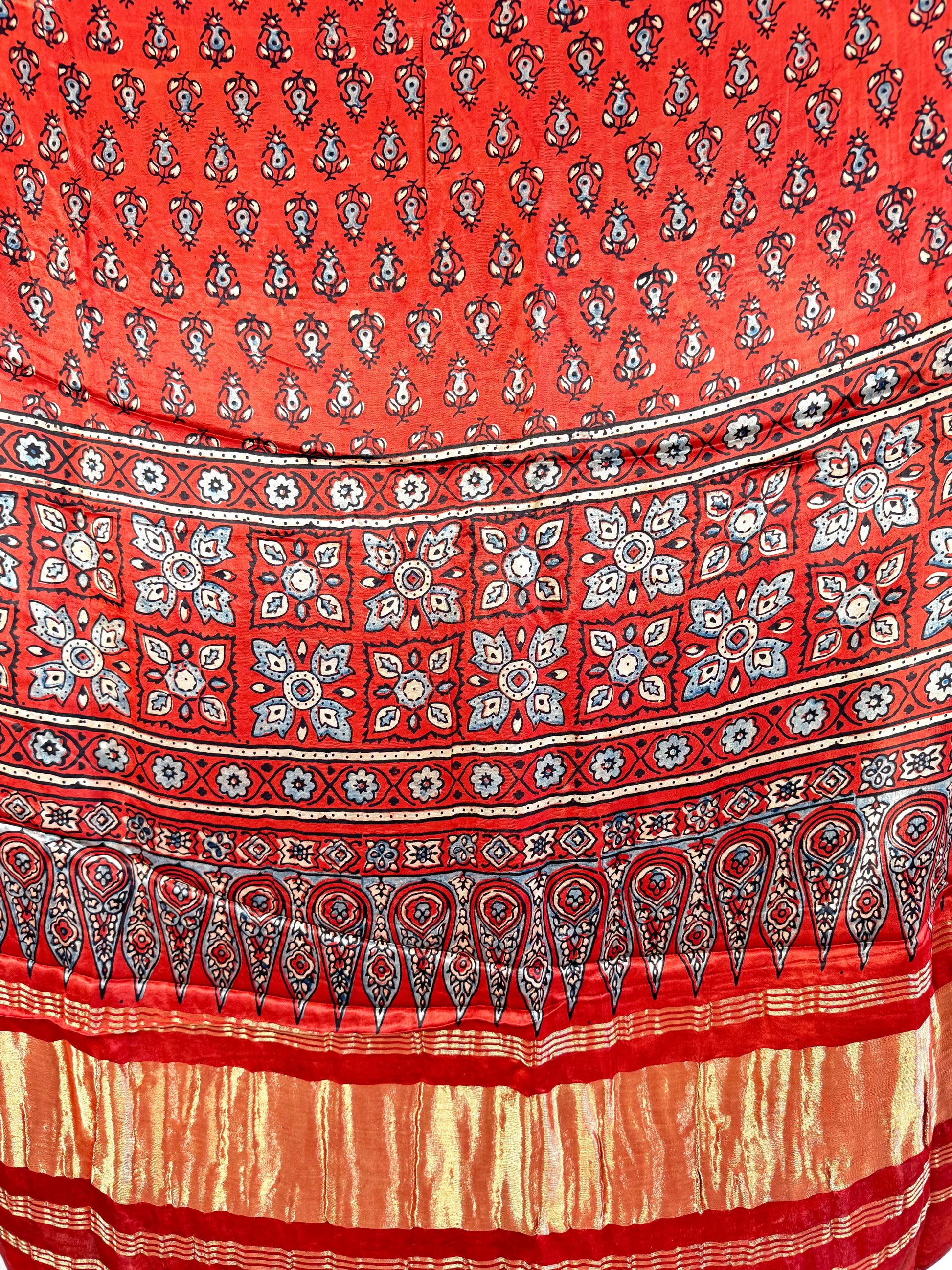 Modal Silk Ajrakh Dupatta ~ Brick Red Tulip Motif w/ Zari