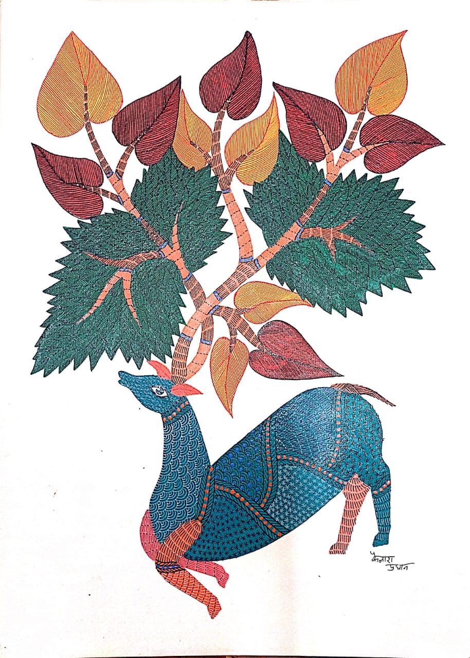 Gond is a 1400 year old folk art form of Madhya Pradesh, depicting tales of deities, and forest spirits through its rich murals and motifs.