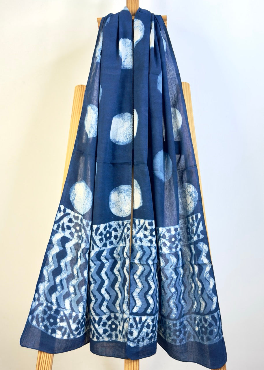 Raag 🪷 Mulmul Cotton Stoles ~ Polka ~ Indigo