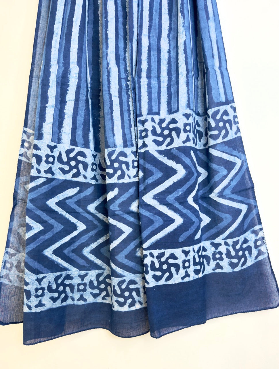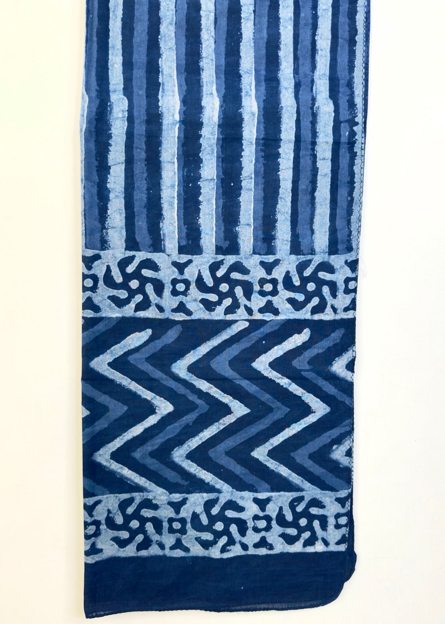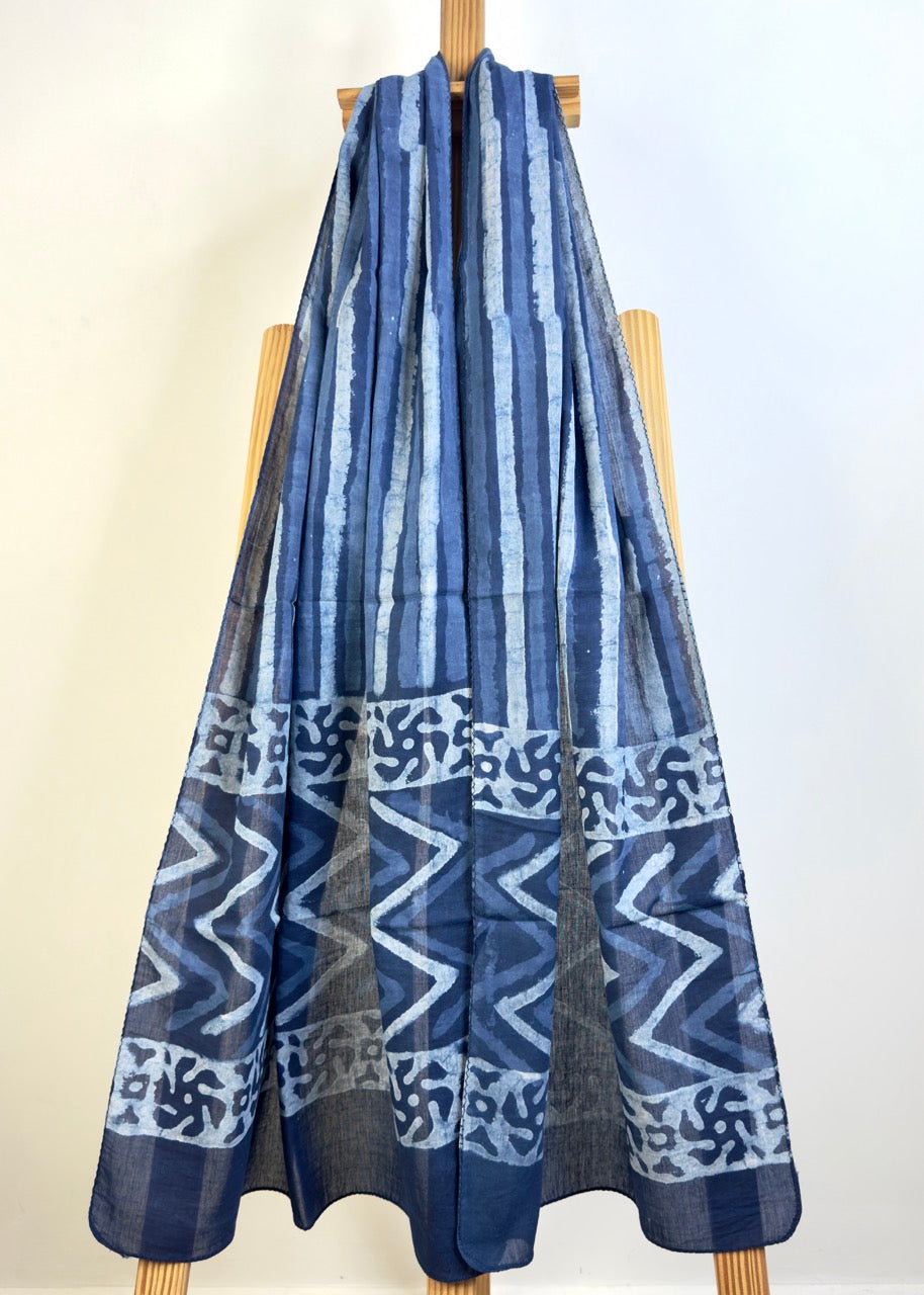 Raag 🪷 Mulmul Cotton Stoles ~ Indigo Doodle