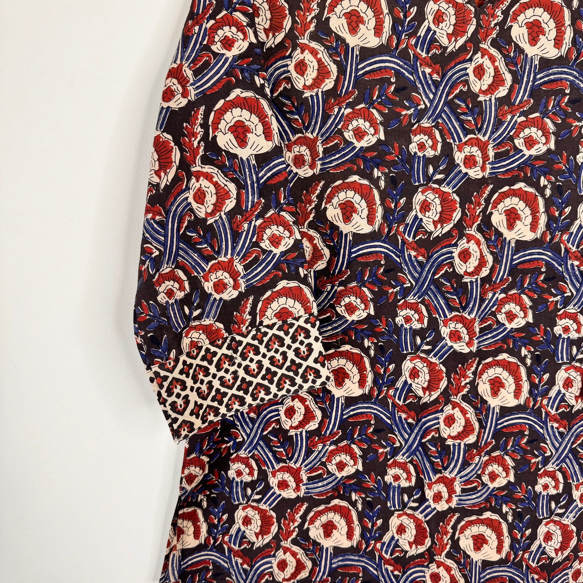 Dark brown and black hand block pure cotton kurti made with natural colors. Feels very breezy on the body. A lovely wear for late summer and early autumn months!