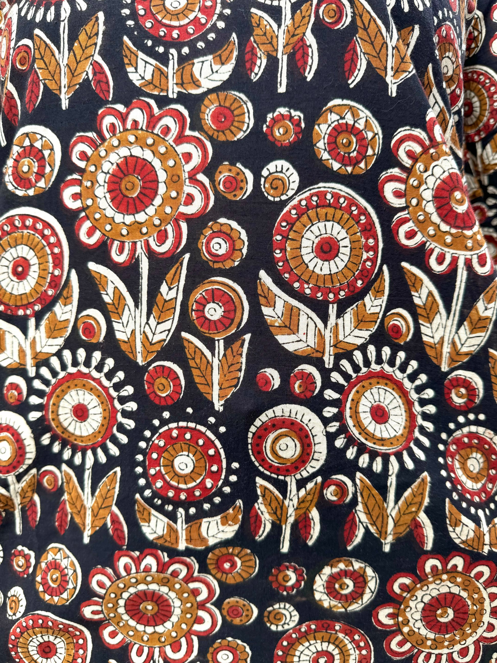 Dark brown and black hand block pure cotton kurti made with natural colors. Feels very breezy on the body. A lovely wear for late summer and early autumn months!
